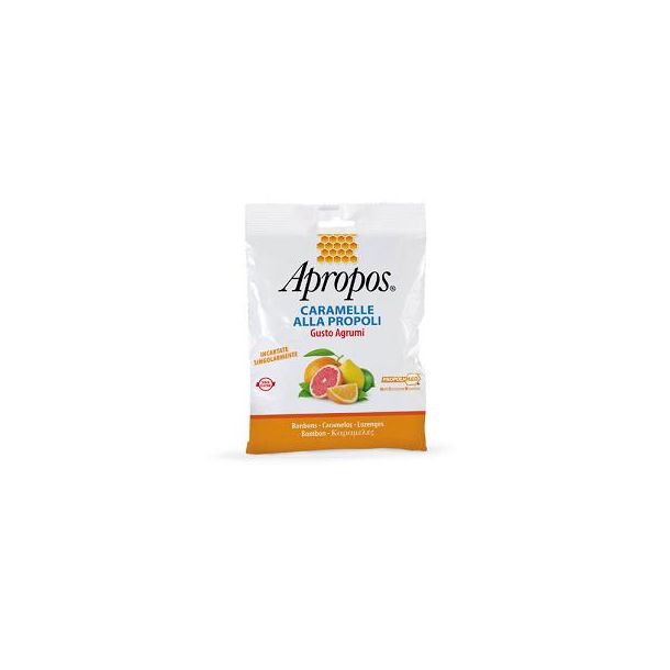 Caramelle alla Propoli con oli essenziali. Gusto agrumi.Gli estratti di propoli sono ottenuti con una metodologia estrattiva innovativa: la Multi Estrazione Dinamica (M.E.D.). Quindi la propoli Apropos massimizza, rispetto alle estrazioni tradizionali, la presenza di Flavonoidi e di Polifenoli, come acidi fenolici, bioflavonoidi agliconi e glucosidi.