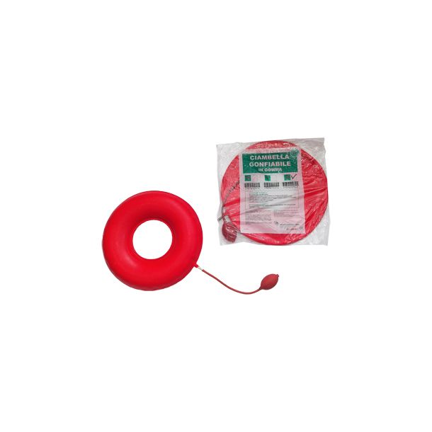 Il presente dispositivo ha lo scopo di alleviare alcuni sintomi e/o disfunzioni generate da malattie sul corpo umano. Il dispositivo deve essere gonfiato con aria prima dell'uso e al proprio interno non possono essere introdotti liquidi o altre sostanze. Cuscino gonfiabile con forma ad anello per dare conforto e sostegno a qualsiasi superficie di appoggio; utile soprattutto dopo un intervento chirurgico o in determinate condizioni mediche come le emorroidi e altre simili. Costruito in gomma resistente a lunga durata.